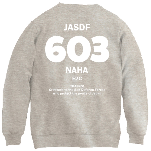 航空自衛隊の基地名と基地に所属する飛行隊番号をデザインしたトレーナーです