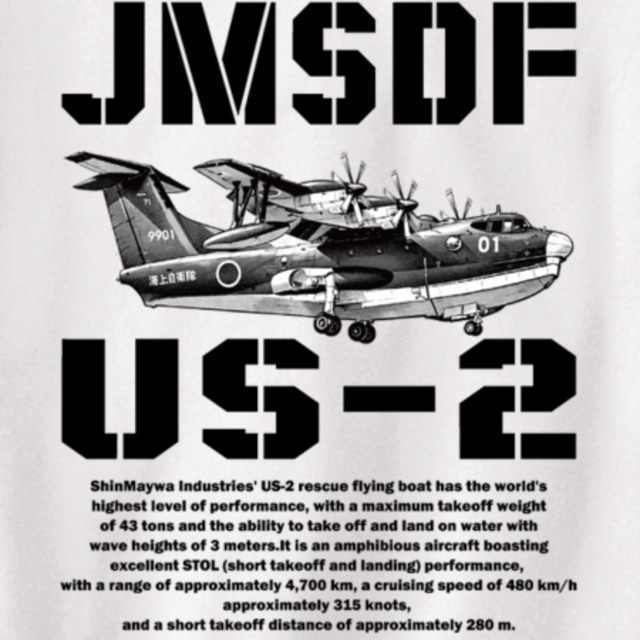 バックはUS-2が飛んでいる側面のモノクロイラスト